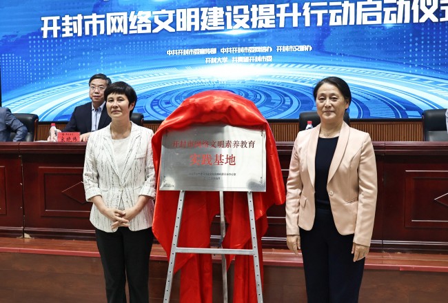 在热烈欢快的气氛中,邵华、陈灿共同为开封市网络文明素养教育实践基地揭牌,启动开封市网络文明建设提升系列活动。