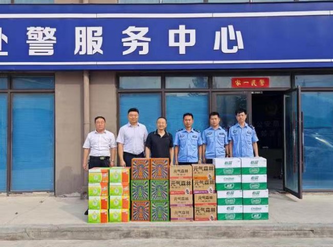 本站讯 为进一步加强与属地派出所的沟通与合作,7月28日下午,副校长李治带领保卫处相关同志来到北郊乡派出所亲切慰问全体民警,并送上慰问品,将我校师生的诚挚问候和温馨祝福送到公安干警身边。北郊乡派出所所长徐金斌,副所长赵朋辉热情接待了学校一行。