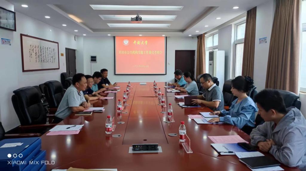 本站讯 为深入学习贯彻习近平生态文明思想和习近平总书记在黄河流域高质量发展座谈会上的重要讲话精神,充分发挥公共机构在节约能源资源工作中的示范引领作用。8月18日下午,开封市机关事务管理局、市委督察局、市委市直机关工委、市文明办等工作人员一行对我校上半年度节能工作进行量化考核。我校党委委员、副校长万是明出席考核会,校园建设与管理处负责人及相关工作人员参加。