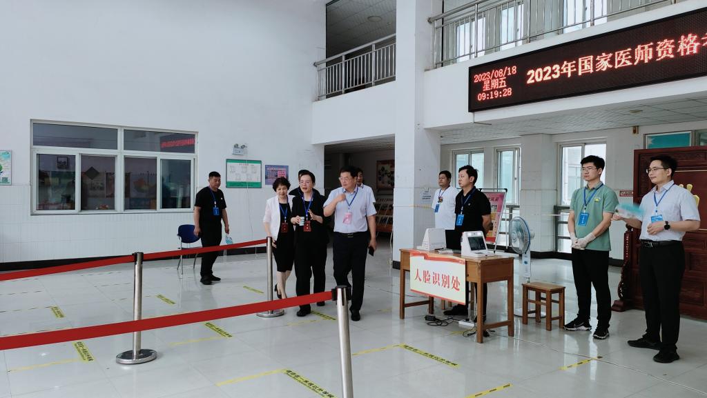 8月18日,副市长徐超文,市卫生健委党组书记、主任刘建宏,副主任于建伟等对我校考点的工作进行了巡视和督查,校工会主席成芳陪同巡视。我校考点工作组织严密、管理规范、高效有序;考务及监考人员精益求精、仔细认真的工作态度;硬件设施配置及考区安保高度到位的措施,得到了巡视人员的一致好评。