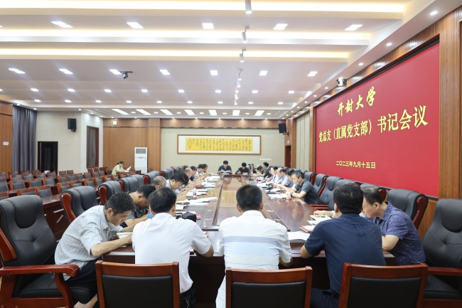 本站讯 9月16日上午,我校在行政楼第二会议厅召开党总支(直属党支部)书记工作会议。党政办公室、党委组织统战部、党委宣传部、学生工作部、团委等部门负责人及各党总支书记、直属党支部书记参加会议。会议由校党委副书记储建新主持。