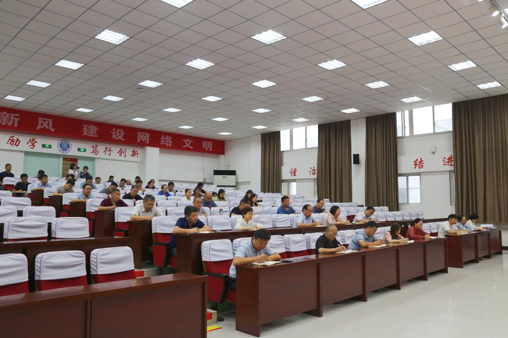 本站讯 9月14日下午,我校在行政楼第一会议厅召开学习贯彻习近平新时代中国特色社会主义思想主题教育动员会,学习贯彻中央、省委、市委有关会议精神,安排部署我校学习贯彻习近平新时代中国特色社会主义思想主题教育工作。校领导宋晓炜、储建新、万是明、曾小平、李治、谢文忠出席会议,全校中层正职干部及直属党支部书记参加了会议。会议由校党委副书记、校长宋晓炜主持。