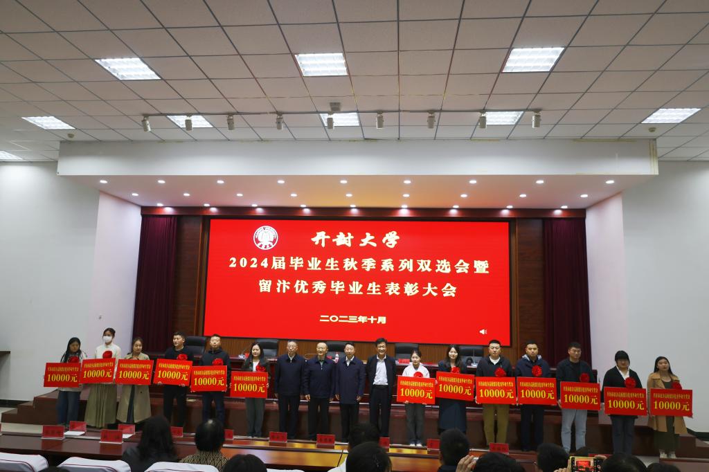 表彰大会上,李治向参会的领导、嘉宾表示热烈欢迎,希望受到表彰的毕业生要继续努力,再创佳绩。同时,他要求所有在校学生要树立正确的择业观、就业观,制定好职业规划,努力学习专业知识和技能,主动迎接每一次机会的到来,早日回报社会、实现人生价值。赵宏宣读了《开封市驻汴高校留汴优秀毕业生评选结果的通知》。与会领导为留汴优秀毕业生颁奖。