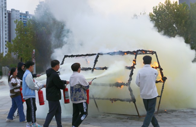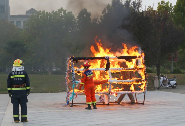 启动仪式结束后,消防救援大队还在广场设置了钻火笼、逃生演练、油锅灭火、液化罐灭火、火盆灭火等消防演练,让与会人员近距离认识了解了消防装备器材,亲身体验了灭火及疏散逃生。