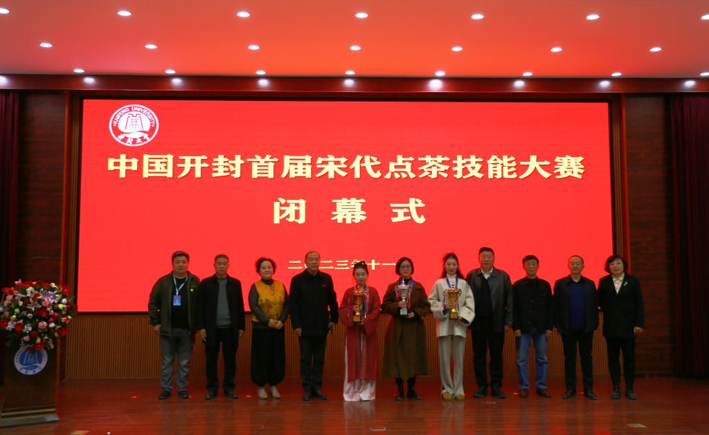 在闭幕式上,李治宣读了中国开封首届宋代点茶技能大赛获奖名单。于吉良、王树强、储建新为获奖选手代表颁发了奖杯、奖牌和荣誉证书。乔臻茜为裁判员代表颁发证书。