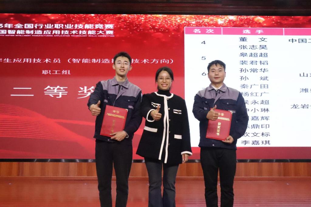 本站讯 11月26日,第五届全国智能制造应用技术技能大赛决赛在杭州落下帷幕。我校省级技能大师工作室团队成员创新创业学院教师刘嘉辉、机械与汽车工程学院教师陈鼎印荣获数字孪生应用技术员(智能制造控制技术方向)赛项职工组二等奖。
