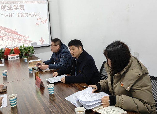 本站讯 近日,创新创业学院教工党支部在学院会议室举行了“三尺讲台守初心 立德树人勇担当”主题党日活动,校长王德如以普通党员身份参加活动并讲话,活动由创新创业学院党总支书记杨辉主持。