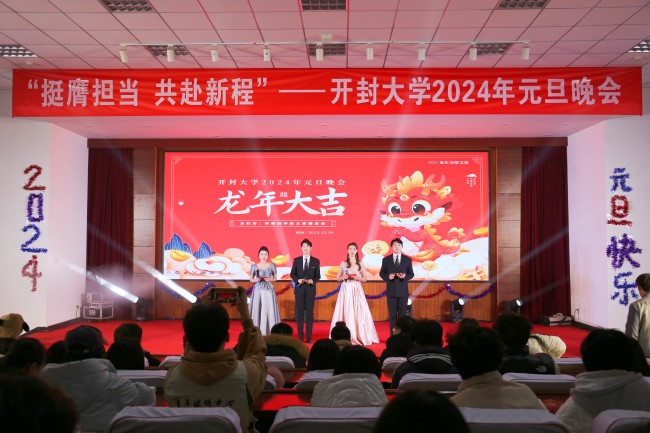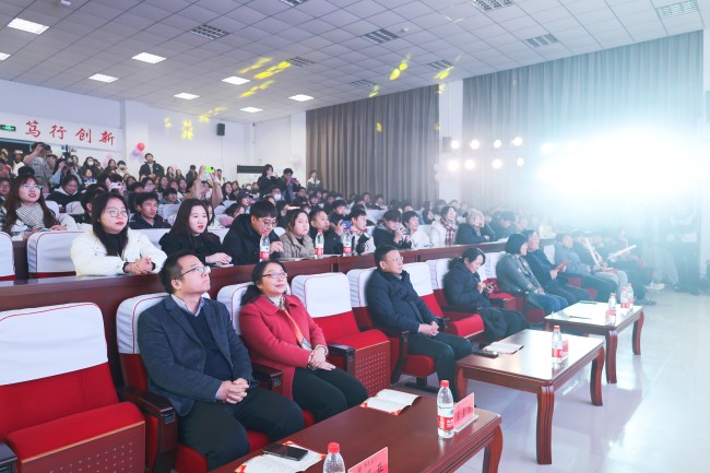 本站讯 12月29日晚,由校团委主办的bat365在线官方网站“挺膺担当 共赴新程”2024年元旦晚会在行政楼第一会议厅隆重举行。副校长万是明、党政办公室主任陈岩、党委宣传部部长常素芳、学生工作部部长付喆、团委书记刘圣亚、各院部团总支负责人、学生代表欢聚一堂,共同观看演出。