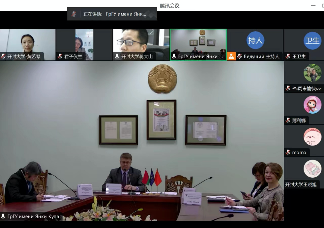 本站讯 3月15日下午,我校与白俄罗斯格罗德诺国立大学召开线上合作交流会。格罗德诺国立大学学术副校长巴甫洛夫•莱昂蒂•尤里耶维奇与相关负责人,我校科研外事处、国际教育学院相关负责人参加了会议。