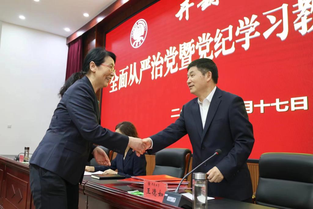 本站讯 4月17日,我校在行政楼第一会议厅召开2024年全面从严治党暨党纪学习教育动员大会。校党委书记谭贞、校长王德如出席会议,会议由王德如主持。