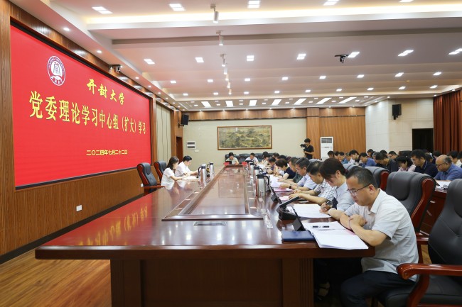 本站讯 7月22日上午,我校党委理论学习中心组(扩大)学习在行政楼第二会议厅举行,校党委理论学习中心组成员、全体中层正职干部参加学习。学习由校党委书记谭贞主持。