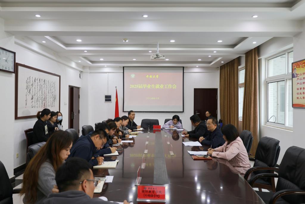 本站讯 10月28日,我校在行政楼第二会议室召开2025届毕业生就业工作会。副校长李治出席会议,各学院副书记、就业指导服务中心全体成员参加会议。会议由就业指导服务中心主任闫俊主持。
