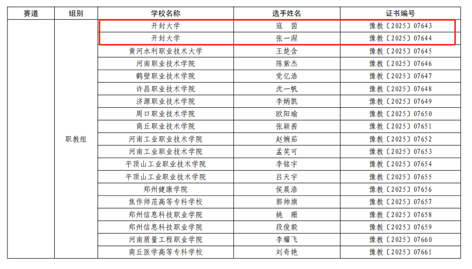 本站讯 近日,河南省教育厅公布了第二届全国大学生职业规划大赛2024年河南省赛获奖名单。我校智能制造学院张元耀同学荣获成长赛道职教组铜奖,艺术设计学院寇茵、医学院张一湦同学荣获就业赛道职教组铜奖。