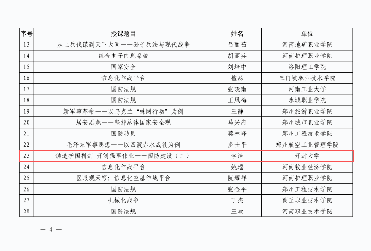 本站讯 近日,河南省教育厅、河南省军区战备建设局公布了2025年度全省高等学校军事理论优质课获奖名单,我校信息工程学院教师李洁讲授的课例《铸造护国利剑 开创强军伟业——国防建设(二)》荣获一等奖。