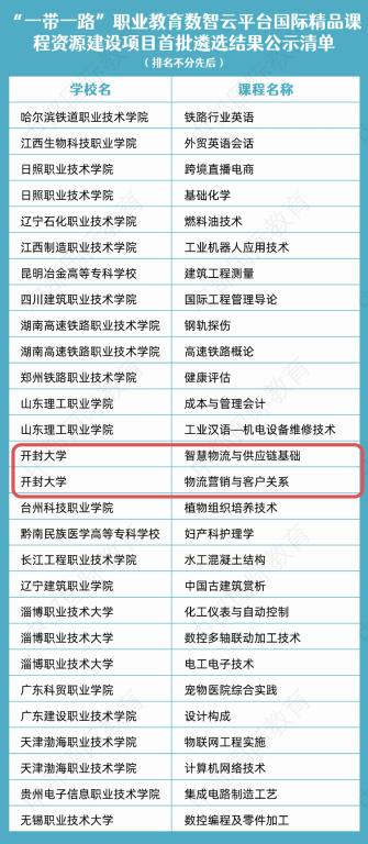 “一带一路”职业教育数智云平台是由沿线国家劳工部、教育部等国外职业教育主管部门牵头建设推广,是区域职教资源共享的核心平台。此次入选的两门课程是学校现代物流管理专业的核心特色课程,内容紧密结合现代物流业数字化、智能化发展趋势,充分展现了学校在物流领域的先进教学理念、扎实教学功底与前沿行业洞察力。