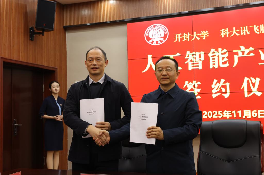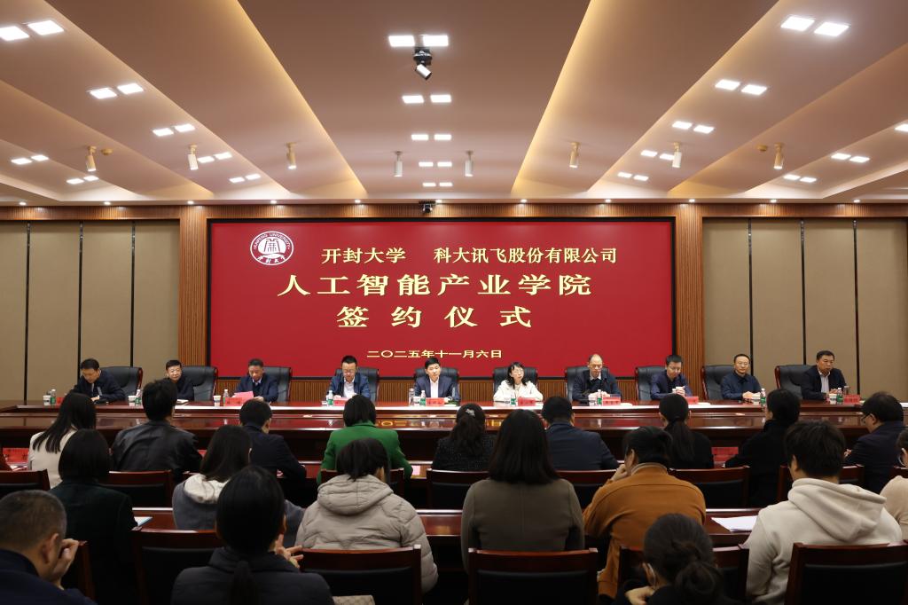 王德如在致辞中指出,学校遵循“共商办学、共建专业、共享资源、共赢发展”的理念,携手科大讯飞共建人工智能产业学院,是深入推进“人工智能+”行动的具体举措。他强调,一是打造“人才共育”标杆载体。从培养方案制定、课程资源开发,到教学团队组建、项目化教学实施,全程与科大讯飞产业共同开发,让学生在校期间接触前沿技术、参与真实项目,实现“毕业即上岗、上岗即胜任”;二是搭建“资源共享”示范平台。整合双方优势,将科大讯飞核心技术、实践案例与bat365在线官方网站师资力量、科研设施深度融合,打造集实习实训、技术研发、社会培训于一体的协同创新中心,既服务校企发展,也辐射带动区域产业升级;三是构筑“发展共赢”战略支点。以产业学院为技术转化“桥梁”、人才交流“枢纽”,共同开展行业关键技术攻关,助力开封乃至中原地区智能制造、智慧政务等领域智能化转型,实现教育链、人才链、产业链、创新链“四链融合”。