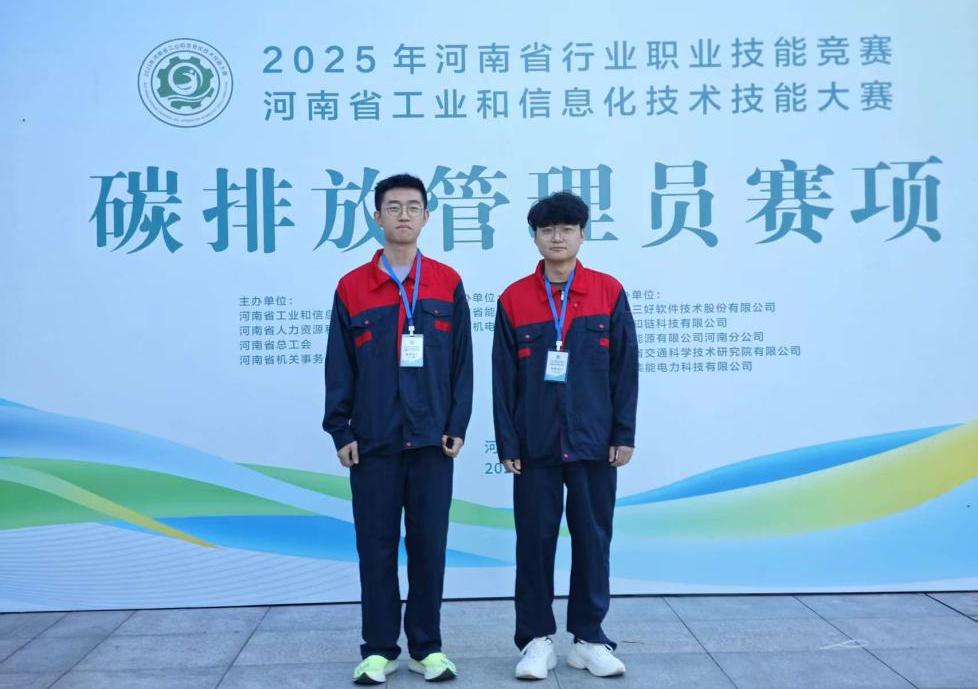 本站讯 近日,2025年河南省工业和信息化技术技能大赛圆满落幕。我校土木建筑工程学院2023级土木工程班夏威豪、张怀志两位同学凭借扎实的专业功底与出色的实战能力,在碳排放管理员赛项中脱颖而出,分别荣获一等奖与三等奖,充分展现了学校在高素质技术技能人才培养方面的扎实成效和强劲实力。