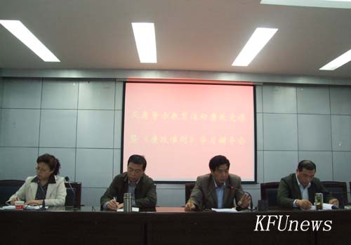 莫书记紧密结合党的十七届四中全会精神,围绕全市反腐倡廉警示教育活动的主题和要求,全面阐述了开展反腐倡廉警示教育活动的重要性和紧迫性,提出加强反腐倡廉教育制度建设、监督制度建设、预防制度建设、惩治制度建设等一系列高校反腐倡廉政制度建设是开展警示教育活动的重要举措,深入浅出地讲解了筑牢领导干部思想道德防线是促进学校科学发展、和谐发展的思想保障,指出了党员干部提高自身素养、构筑抵御腐败的思想道德防线的具体途径与方法,要求大家要有坚定的理想信念、牢固的组织观念、很强的宗旨意识、高尚的人品官德和昂扬的进取精神,要用科学理论武装头脑,要经常进行党性分析和自我解剖,要勇于接受师生的批评监督,要注重在实践中历练自己,并提醒广大干部要在五个方面做到慎重,即:慎初、慎微、慎欲、慎独、慎终。反腐倡廉党课引人入胜,与聆听党课的干部产生了积极共鸣,大家听得认真,记得详细。