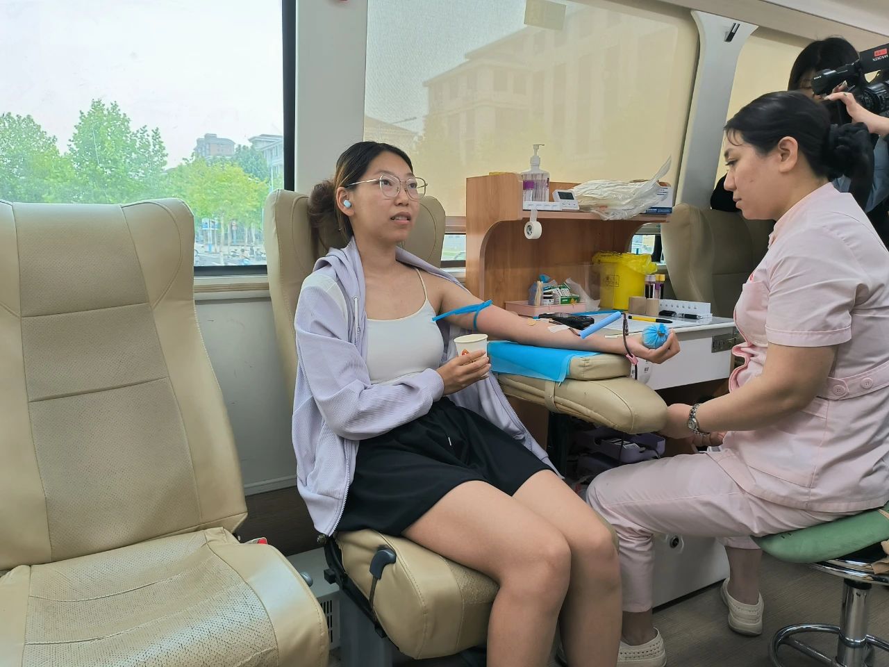 bat365在线官方网站材料与化工学院大一女生陈奕含正在采血车上献血,她右手紧攥着减压球,目光却勇敢而坚定地紧盯逐渐充盈的血袋。“去年因为特殊原因没有献血,这次终于成功完成了自己人生中的第一次献血,既能帮助别人,也是自己人生中一次难忘的经历。”
