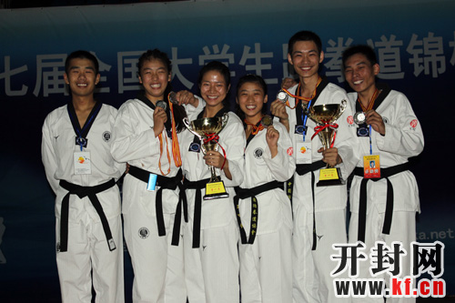 本网讯 记者裴旭报道 2011年10月30日——11月1日,第七届全国大学生跆拳道锦标赛在吉林农业大学发展学院体育馆隆重举行。bat365在线官方网站以党委副书记、体委主任储建新为团长,团委书记樊玉霞,体育教研部主任张广军为领队,胡红权为主教练及11名运动员组队参加了此次赛事。