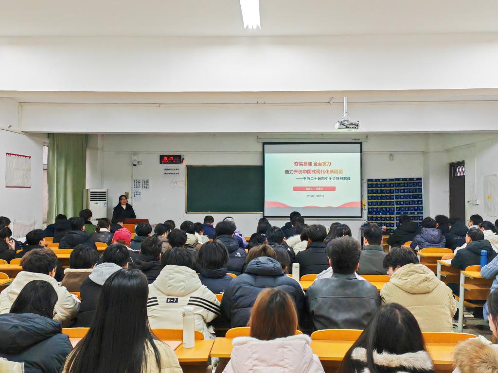 本站讯 为深入学习贯彻党的二十届四中全会精神,引导师生统一思想、凝聚共识,12月22日,土木建筑工程学院隆重邀请学校党委宣传部部长常素芳教授来院作专题宣讲报告。活动会由学院党总支书记李军主持,学院党政领导班子、全体教职工、学生党员及骨干代表参加。
