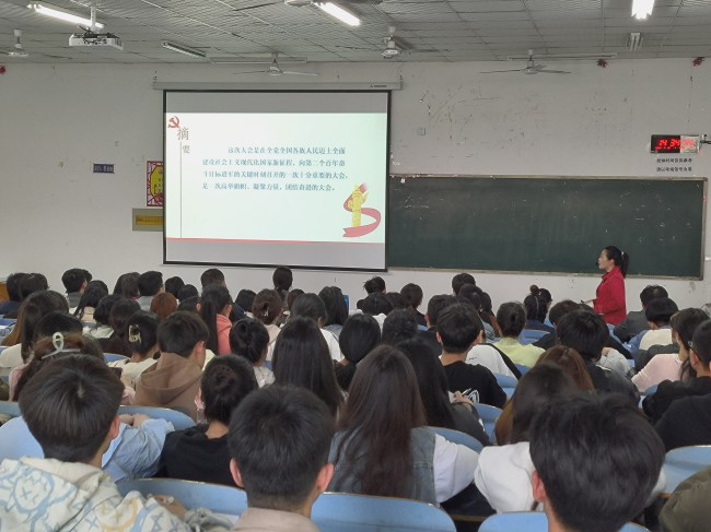 本站讯 为全面深入学习领会党的二十大精神,4月10日下午,财政经济学院党总支在15号楼202阶梯教室开展了党的二十大精神专题宣讲活动。学院全体党员教师、学院分党校第18期发展对象培训班学员和第67期积极分子培训班学员参加了宣讲活动。 活动由学院教工支部书记崔芸主持,市委二十大精神宣讲团成员、马克思主义学院副教授苏会君以《深入学习宣传贯彻党的二十大精神》为题展开宣讲。
