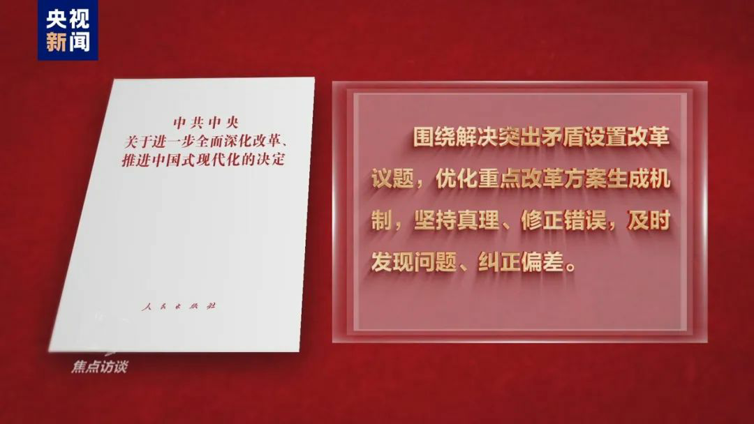 进一步全面深化改革要直面问题。改革是由问题倒逼而产生,又在不断解决问题中得以深化。《决定》提出,围绕解决突出矛盾设置改革议题,优化重点改革方案生成机制,坚持真理、修正错误,及时发现问题、纠正偏差。