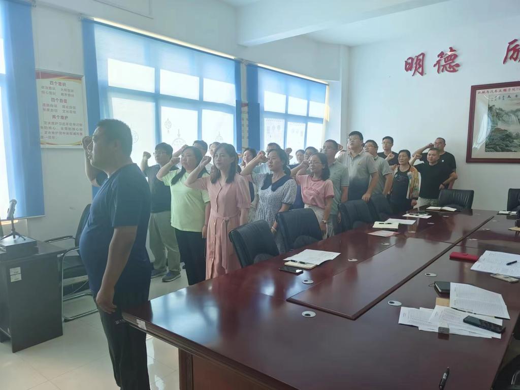 二支部组织委员孙德雨带领全体党员在党旗下庄严宣誓,重温入党誓词。党员教师陈潇带领大家学习了《习近平在中共中央政治局第七次集体学习时强调,全面加强军事治理,以高水平治理推动我军高质量发展》,并交流了自己的学习心得。全体党员缴纳了党费,并完成上月党员积分自评。为确保学期初学生开学返校及新生报到各项工作顺利进行,党支部号召全体党员积极投身于相关志愿服务。