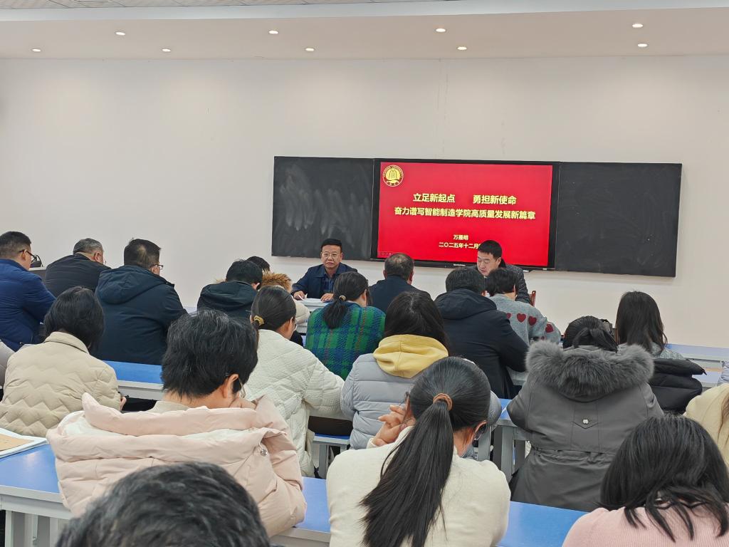 为深入学习贯彻党的二十届四中全会精神,明晰智能制造领域的时代使命与担当。12月4日下午3:30,智能制造学院在6号楼321会议室举行党总支专题党课教育活动,学院联系校领导万是明以“立足新起点,勇担新使命,奋力谱写智能制造学院高质量发展新篇章”为题,为全院教职工讲授了一堂内容丰富、思想深刻的专题党课。学院班子成员、全体教职工参加本次专题党课学习。