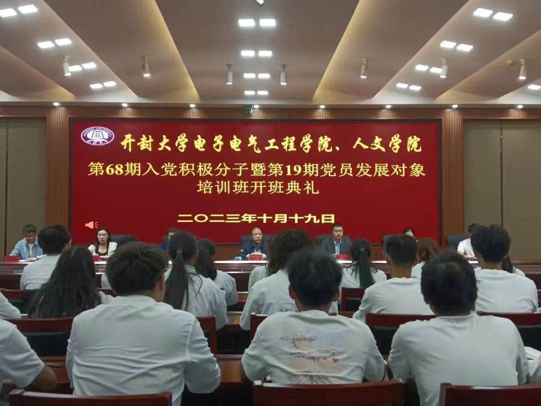 本站讯 10月19日下午,bat365在线官方网站电子电气工程学院、人文学院在行政楼第二会议厅举办分第68期入党积极分子培训班和第19期发展对象培训班开班仪式。校党委副书记储建新作开班致辞并为学员上第一节党课。电子电气工程学院党总支书记李鹏、人文学院党总支书记梁波、电子电气工程学院和人文学院学生党支部相关教师出席仪式,开班仪式由人文学院党总支副书记、学生党支部书记郭姗姗主持。
