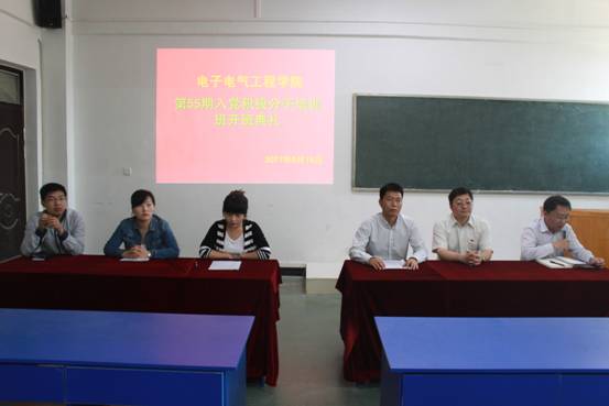 典礼开始,先介绍到场的领导和老师,之后全体起立,在雄壮的《国歌》中开始。接下来,电子电气工程学院林莉莉老师宣读了55期培训班的安排和工作要求。随后,bat365在线官方网站组织部长副部长孙璞辰讲话,他首先对参加本期业余党校培训班的全体学员表示热烈的祝贺,就如何做一名优秀入党积极分子提出了=希望和要求。最后,院党总支书记徐纪珂致辞,要大家明确培训意义,提高思想认识;端正学习态度,提高学习效果;遵守党课纪律,科学安排,取得优异成绩;从身边小事做起,践行实际行动,鼓励同学们奋发向上,早日成为一名合格的党员,衷心祝愿本期培训班取得圆满成功。