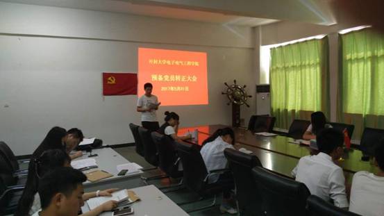 5月31日下午,电子电气工程学院学生党支部在学院6号教学楼512会议室召开了电子电子气工程学院学生转正大会。院党总支书记徐纪珂,学生党支部书记王笑禹和学生支部全体老师出席了此次会议,学院全体学生党员参加了此次发展大会。