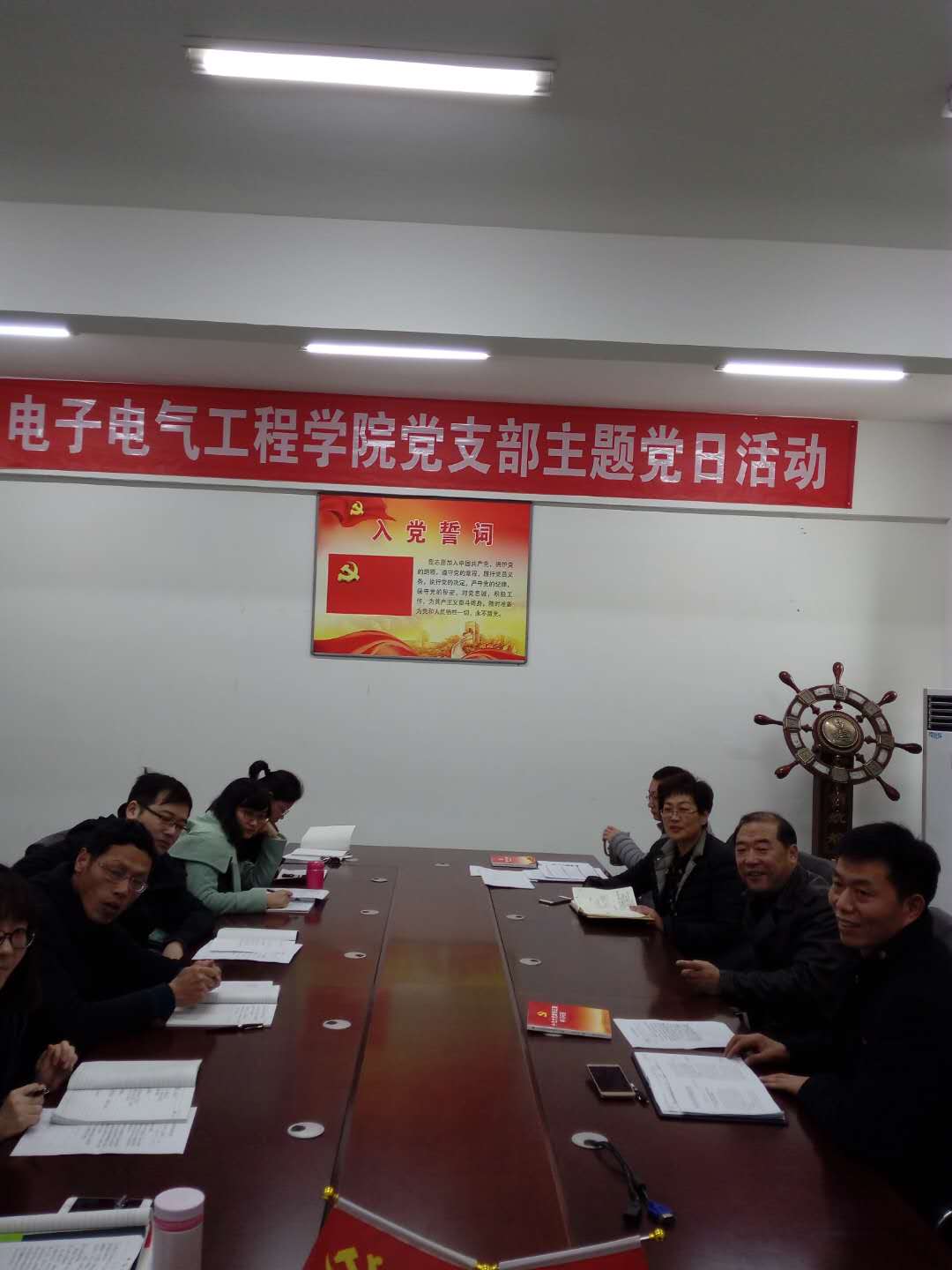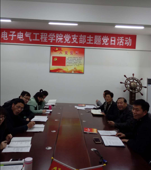 储书记结合电子电气工程学院的教学、科研及党日活动开展情况提出了两点点要求:一要将“工匠精神”向“工匠成果”方向转化,围绕职业技能大赛将具体工作落实到位,多出成果;二要在工作中加强学生意识形态的引领,培养德智体全面发展的社会主义接班人。储书记讲话内容切合工作实际,为电气学院以后的工作指明了方向。电气学院全体教师表示在日常生活中和工作中提升自己的政治素养,也会更加自觉履行党员义务,努力承担自己的责任。