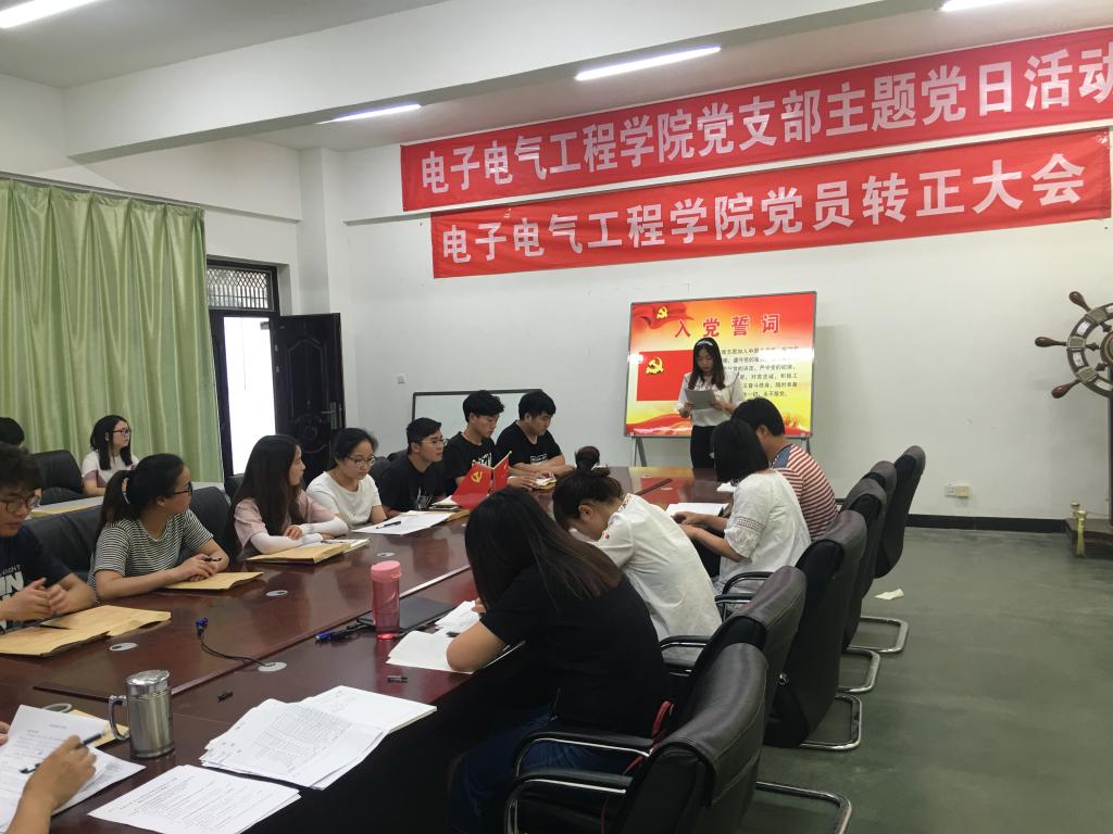 本次活动李斐、邓娜和秦亚萍三位同志过了集体政治生日,三位同志分别畅谈生日感言,总结了自身不足和工作问题,徐纪珂同志代表学院党总支为他们送上了“新时代 新征程,事业是干出来的,希望同志们不忘初心、牢记立德树人使命,敬业工作、潜心研究、不断提高师德修养,教好书育好人”的集体寄语。学院其他党员教师分别为这三位老师送上生日寄语。边书记总结发言,肯定了为电气学院做出的努力,同时勉励他们再接再厉。会上完成了当月党费的缴纳。随后,电子电气工程学院党总支举办了毕业生党员转正大会,同时对即将迈出校门的学生进行一次党的理论教育。