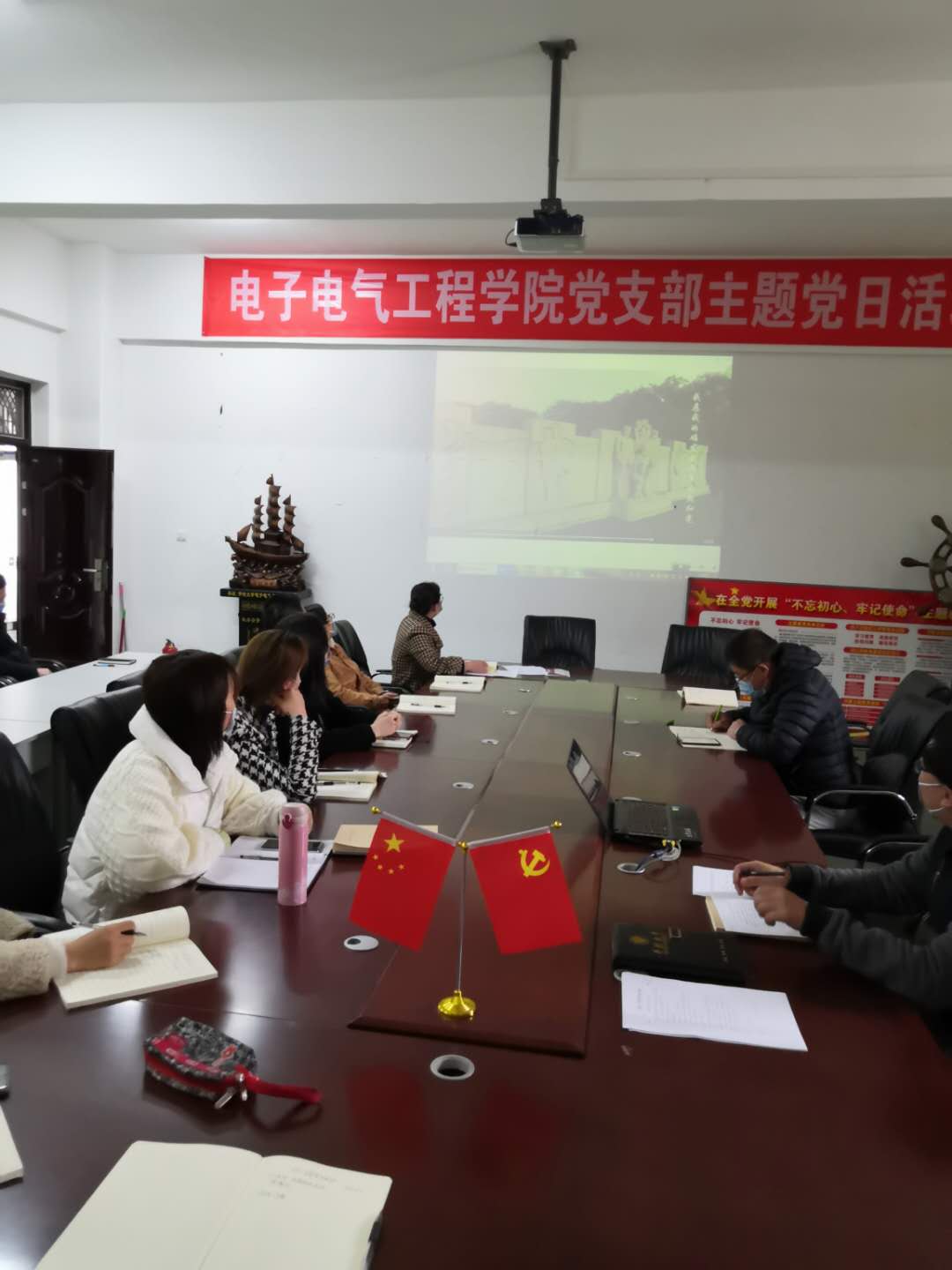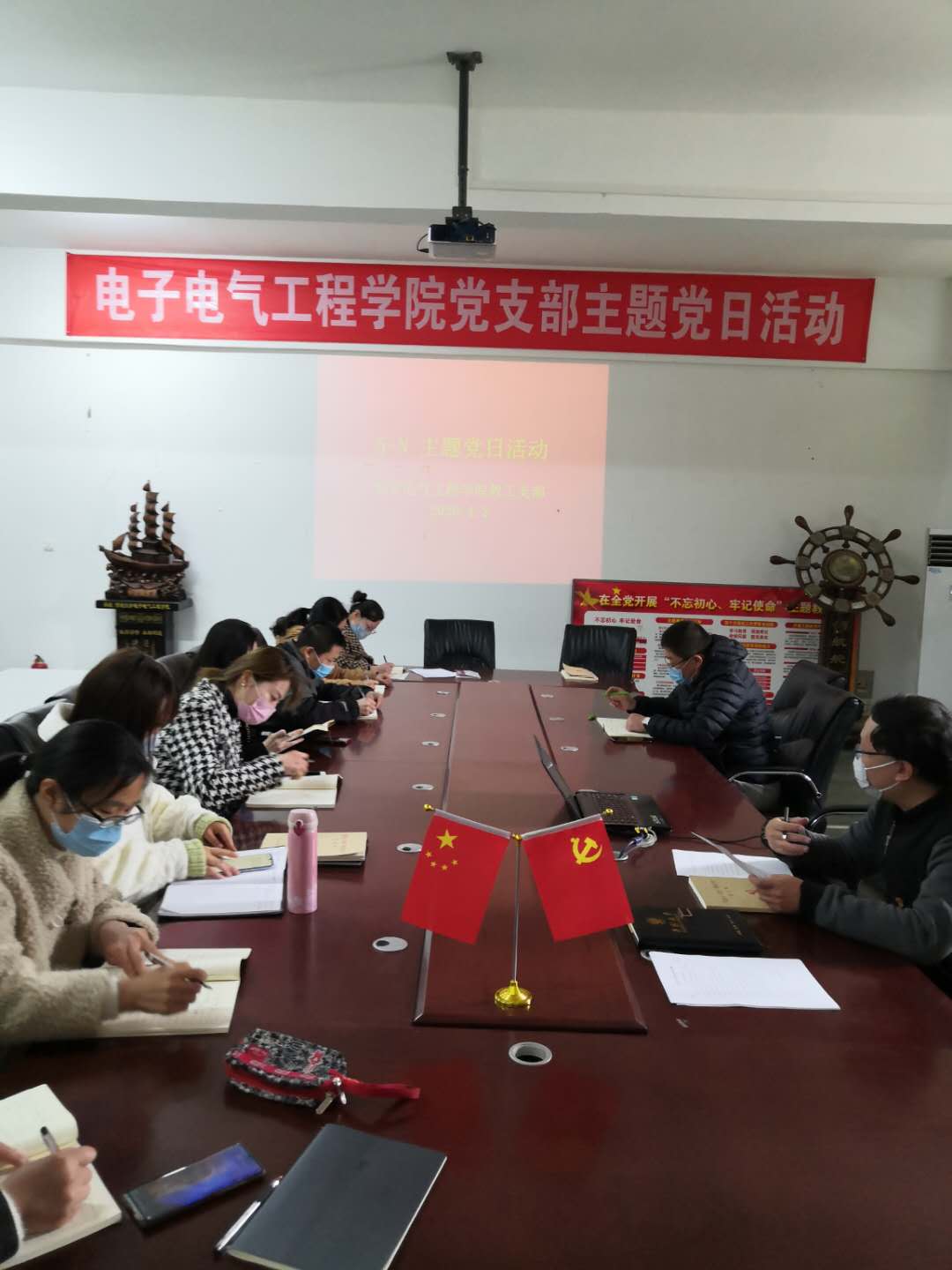 在清明节即将到来之际,为激发全体党员的爱国主义,激励党员干部把思想和行动统一到落实习近平总书记关于疫情防控工作的重要指示精神及到湖北考察疫情防控工作时的重要讲话精神上来,电子电气工程学院教工党支部于4月2日下午3:00在6号楼512会议室开展了“忆清明,缅怀革命先烈,教育教学做模范”为主题的五+N党日活动。活动由教工支部书记边疆主持。