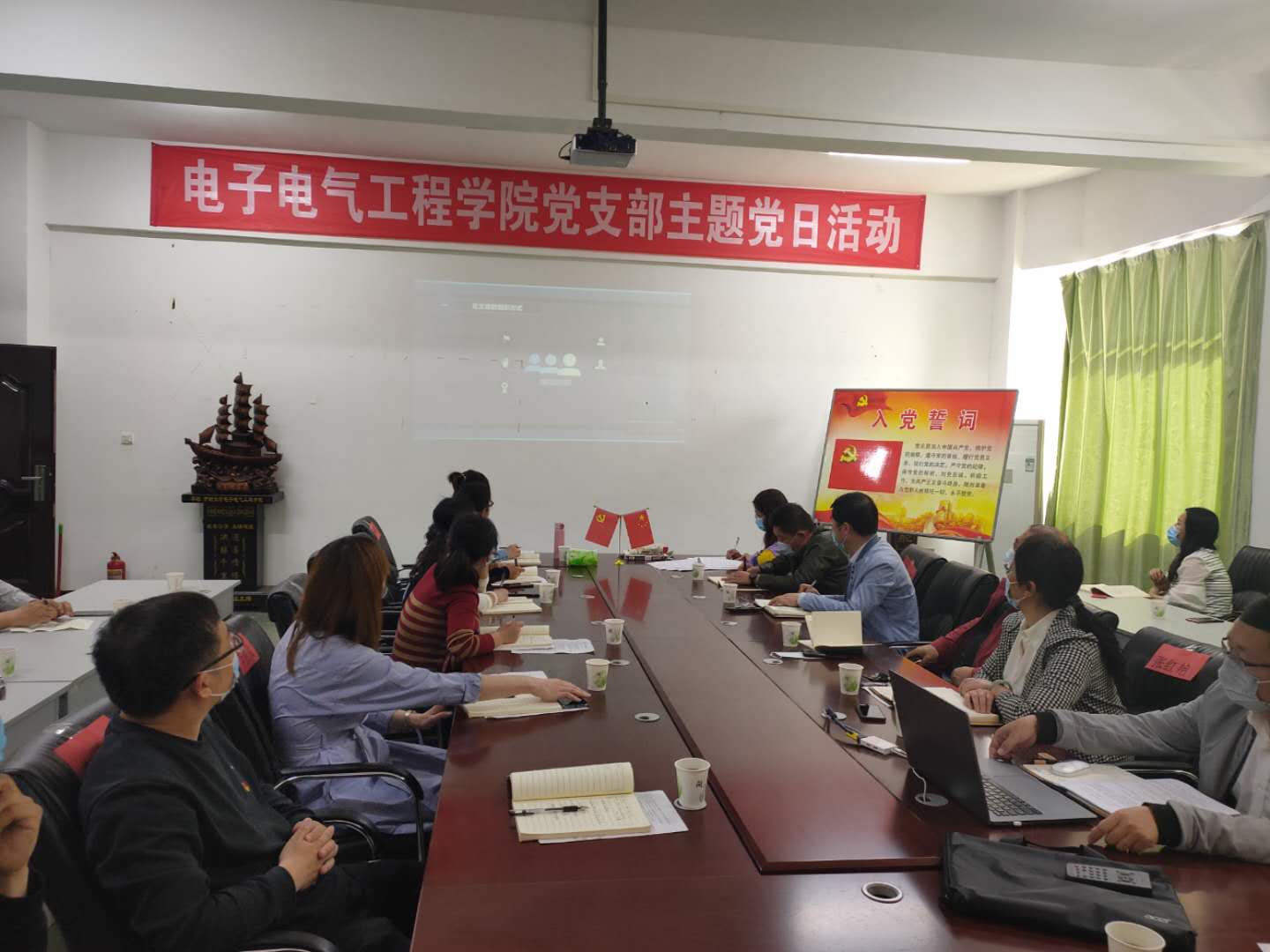为加强党组织队伍建设,激励基层党组织和党员干部把思想和行动统一到落实习近平总书记系列的重要讲话精神上来,电子电气工程学院教工支部于5月11日下午3点在6号楼512会议室开展以“攻坚克难、拼搏奋进,做合格劳动者”为主题的党日活动,电子电气工程学院教工支部全体党员参加会议,校党委副书记储建新、组织统战部部长赵海胜及其他学院书记出席了本次会议,会议由教工支部书记边疆主持。