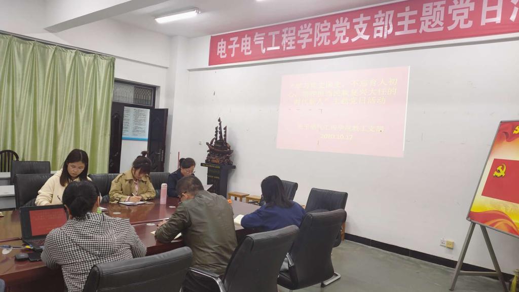 金秋十月,迎来了中华人民共和国成立71周年,71年来,中国共产党领导全国人民以大无畏的革命精神改革开放,取得了前所未有的举世瞩目的成就。为更好的回望历史,让我们有前进发展的动力。10月12日下午4:00,在6号楼512会议室电子电气工程学院教工支部以“学习党史国史,不忘育人初心,培养担当民族复兴大任的时代新人”为主题的“五+N”党日活动,会议由支部书记边疆主持。