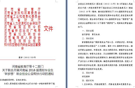 附件:《关于联合开展河南省2016届高校毕业生“新梦想”就业创业公益帮扶行动的通知》