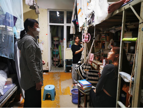 走访中,张红艳、杨辉和辅导员亲切地与学生进行交流,细致询问他们假期生活学习情况,返校中途有关事宜及开学准备。张红艳叮嘱大家一定要提高疫情防控意识,做好每天的消杀并做好记录;认真执行好疫情防控下的各项规定,提高纪律性。她还提醒同学们尽快把宿舍收拾好,把环境卫生搞好,多开窗通风,出门戴口罩等休息好个人防护,及早调整好心态,做好学习规划,以积极的面貌和饱满的热情投入到新学期的学习生活中。