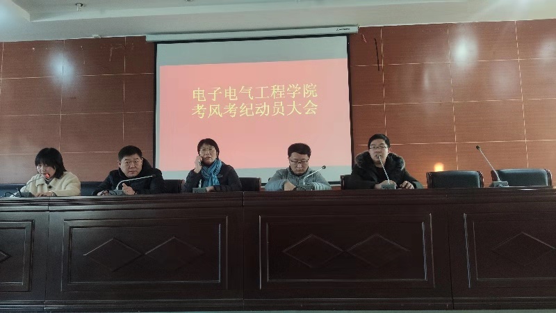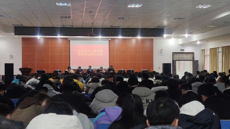 为充分调动全体同学考前复习的积极性,进一步树立良好的学风考风,做到诚信考试,电子电气工程学院组织全院19级学生及18级各班班长于2019年12月26日在土木院六楼举办了考风考纪动员大会。出席本次大会的有党总支书记张红艳、副书记杨辉、副院长边疆、19级辅导员朱朝旭。本次大会由王娟主持。