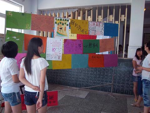 本站讯(记者 李记卫)我院11级学生为对09级即将走出校门的毕业生表达最诚挚的祝福,6月12日11级学生在一号楼2楼大厅举办了欢送毕业生手抄报活动。