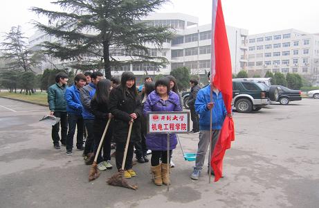本站讯(记者蒋宜东赵丹)为弘扬雷锋乐于奉献、不怕吃苦的精神,3月22日我院特组织学生“学雷锋,服务师生”打扫校园的活动。