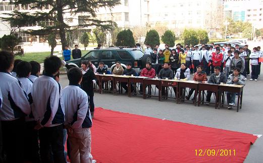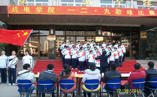 本站讯 12月9日中午,机电学院举办的12·9红歌大赛总决赛在一号楼前隆重举行。院党总支副书记徐纪珂、团总支书记高剑南、辅导员韩老师和王老师出席观看了本次大赛并担任评委。经过激烈的初赛和复赛,最终有八个班级进入总决赛。