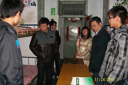 11月24日中午,我院党总支书记马广卿、党总支副书记徐纪珂、副院长朱跃峰、高明远、团总支书记高剑南等领导及辅导员老师来到学生宿舍与学生谈心交流,亲切的慰问着学生的生活,叮嘱每位学生要注意加衣保暖,多运动,时刻注意自己的身体健康,有一个健康的体魄,才能更好地完成自己的在校学习、生活。最后希望同学们在学习、生活中遇到困难,一定要向院里反映,学院会尽力为每位同学解决困难。
