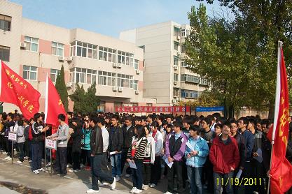 举办此次招聘会意在为学生提供更多与社会接触的机会,提高在校学生的求职能力和职业规划意识,从而引导他们合理地进行职业规划,提高职场应聘技巧。招聘会上模拟的有诺基亚、阿里巴巴、新东方、海尔等公司进行招聘。模拟招聘会开始后同学们拿着精心准备的个人简历参加面试,他们排队依次上场,应聘过程中沉着、冷静、自信。