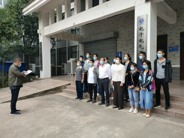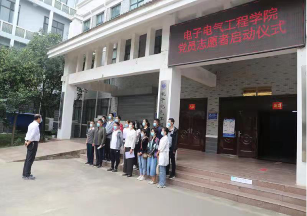 9月24日上午,为深入开展党史学习教育,将“我为群众办实事”落到实处,践行党的初心使命,引导广大党员教师知史爱国、知史爱党,电子电气工程学院开展“做实事 我先行 迎学子 当先锋---让党旗飘扬”党日活动。上午8:30,爱心车队志愿服务启动仪式开始,活动由电子电气工程学院教工支部书记边疆主持,校党委副书记储建新和电子电气工程学院全体教工党员志愿者参加。
