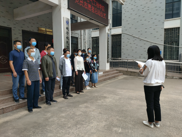 首先,储建新副书记要求大家高度重视这项特殊的接站任务,在全力以赴做好服务的同时也做好自身防护。随后,电子电气工程学院副书记杨辉宣读接站防控要求,分组分批到五大站点接学生,使学生志愿者能够顺利返校,在战“疫”工作中,守护校园的平安,保障学生的健康,担负起教育工作者的使命,对学生高度负责。党员志愿者李莉老师作为党员代表发言,在疫情防控工作中,党员教师们冲锋在前,用实际行动诠释使命和担当。最后,电子电气工程学院书记张红艳宣布电子电气工程学院“做实事 我先行 迎学子 当先锋---让党旗飘扬”爱心车队志愿服务启动。