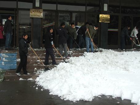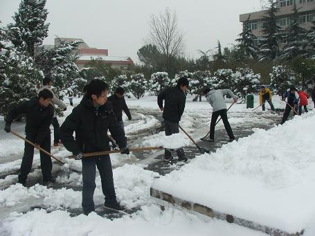 本站讯11月11日至12日连降大雪。为了避免积雪给师生出行带来不便,机电学院师生于12日下午3点组织开展了清扫积雪活动。