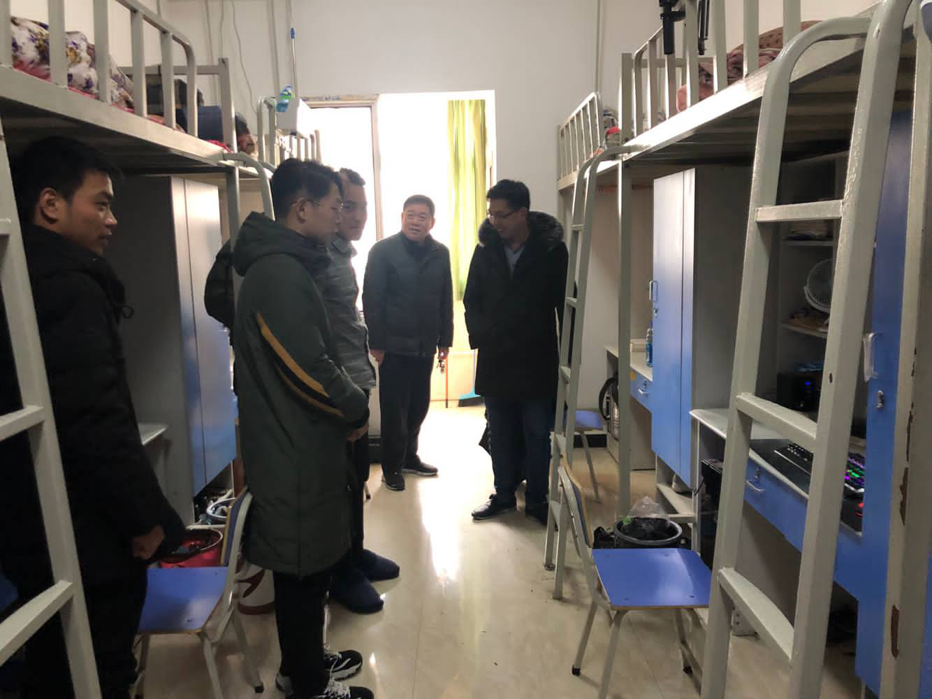 下午4:30,电子电气工程学院党总支书记张红艳、副书记杨辉及各年级辅导员分别到6号和11号宿舍楼看望同学们,督促同学们整理好内务,同时注意用电安全。张书记强调,良好的生活习惯,健康的寝室文化是我们学习的基本保障,包括寝室卫生、寝室道德、寝员关系以及寝室职能等。