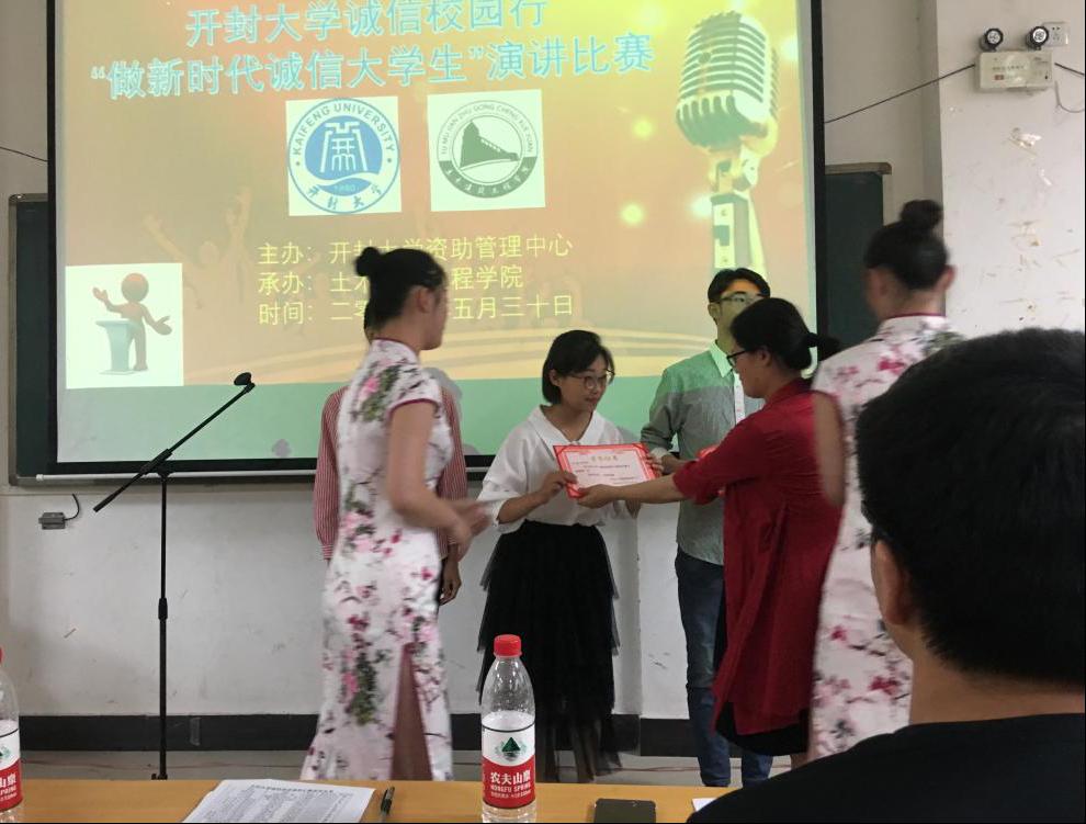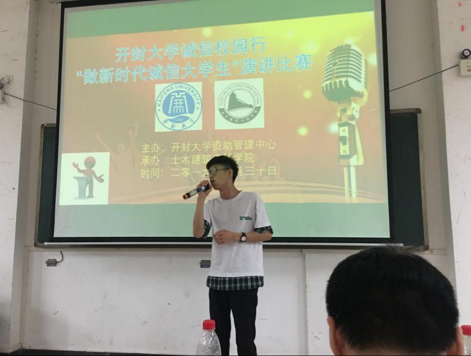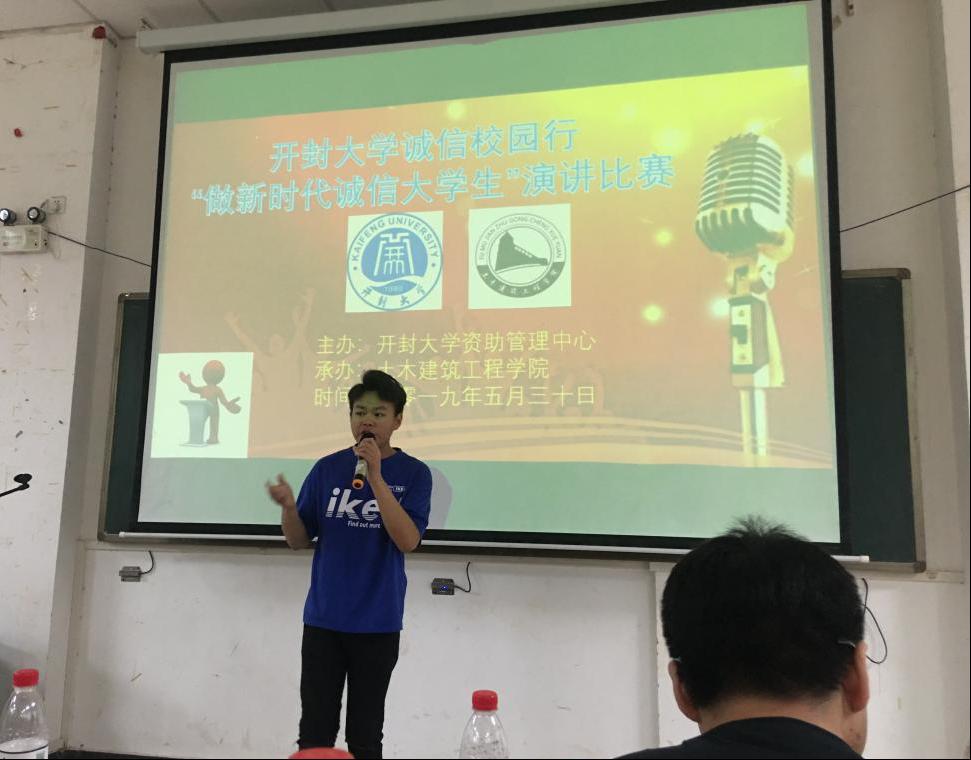 为弘扬大学生诚信风貌,树立新时代道德先锋,5月30日下午,我院三名学生代表在17号楼116教室参加了由校资助中心联合土木学院举办的“做新时代诚信大学生”演讲比赛。